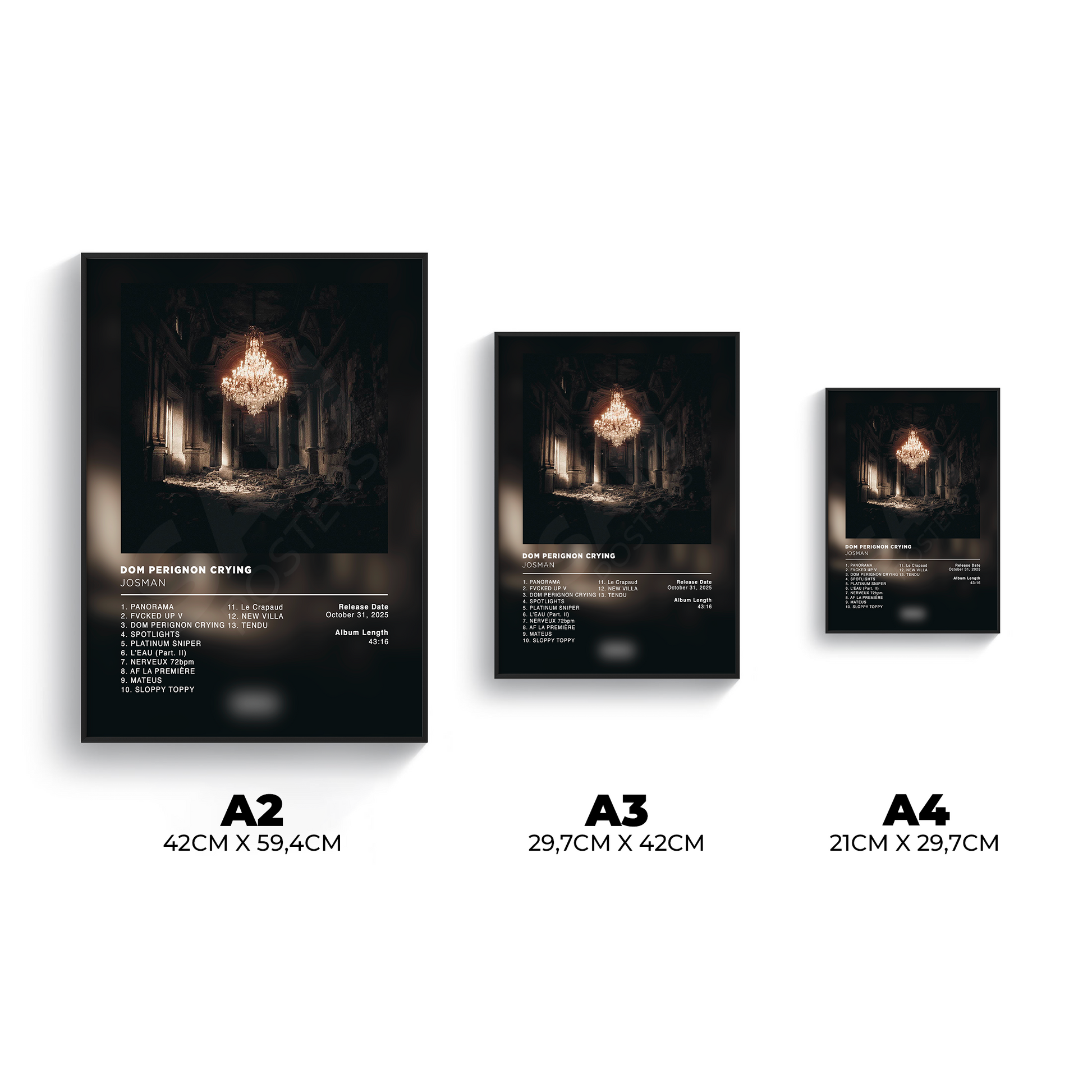 Explorez l'univers Dom Perignon Crying de Josman avec nos affiches exclusives. Transformez votre espace pour donner vie à vos murs avec des posters uniques capturant l'esthétique de cet album.