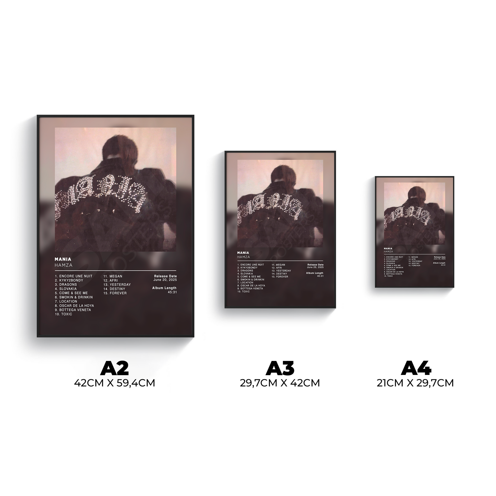 Explorez l'univers Mania de Hamza avec nos affiches exclusives. Transformez votre espace pour donner vie à vos murs avec des posters uniques capturant l'esthétique de cet album.