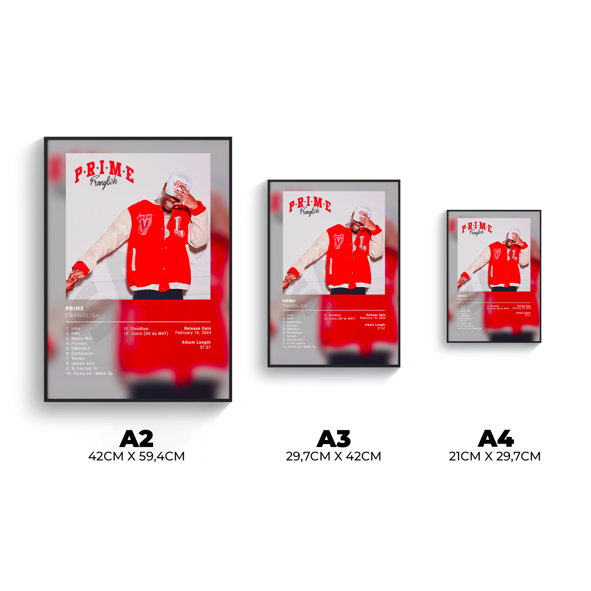 Explorez l'univers Prime de Franglish avec nos affiches exclusives. Transformez votre espace pour donner vie à vos murs avec des posters uniques capturant l'esthétique de cet album.