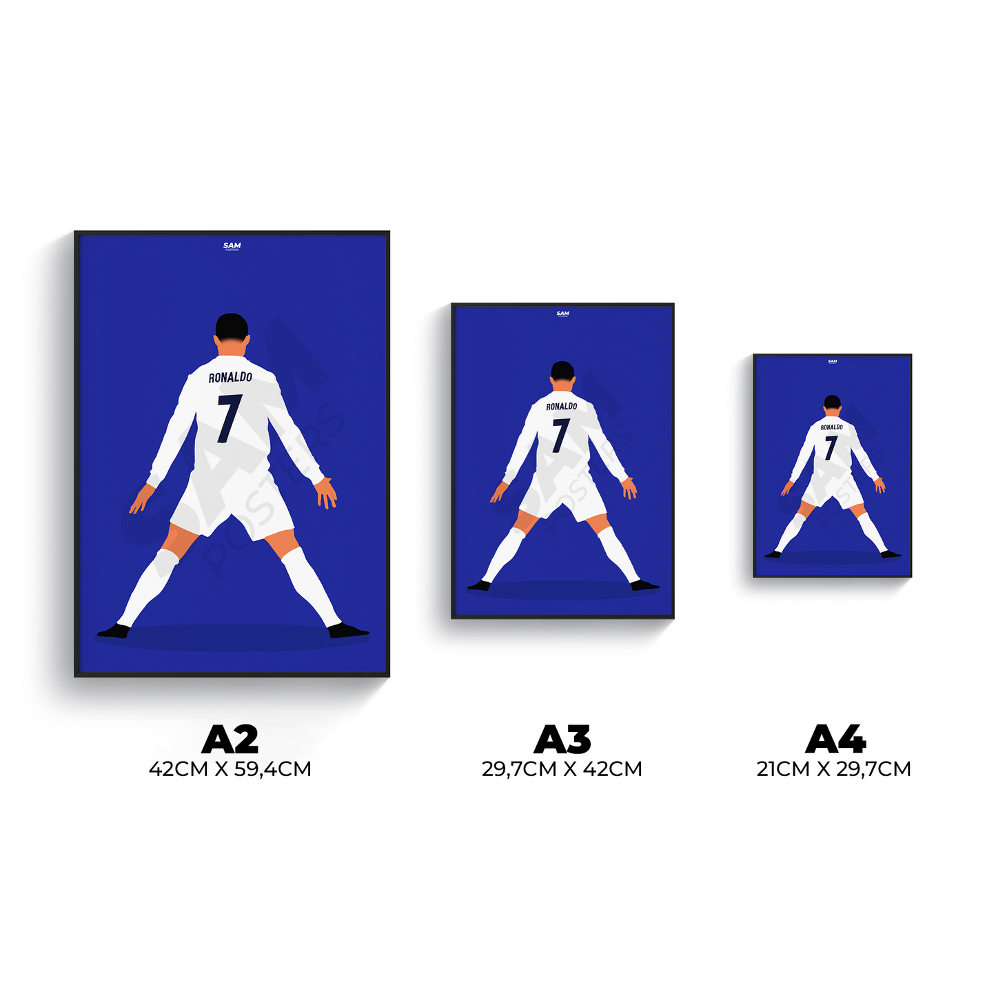 Célébrez la passion et le talent de Cristiano Ronaldo au Real Madrid avec nos affiches et posters exclusifs. Transformez votre espace en un hommage visuel dynamique avec vos célébrations favorites.