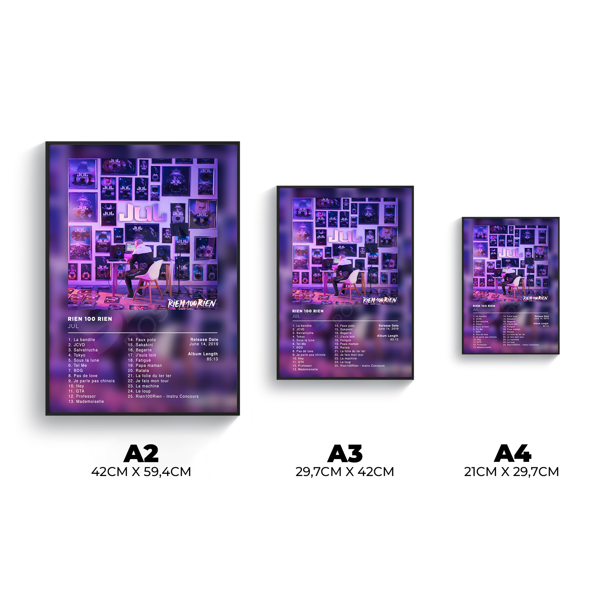 Explorez l'univers Rien 100 Rien de JuL avec nos affiches exclusives. Transformez votre espace pour donner vie à vos murs avec des posters uniques capturant l'esthétique de cet album.