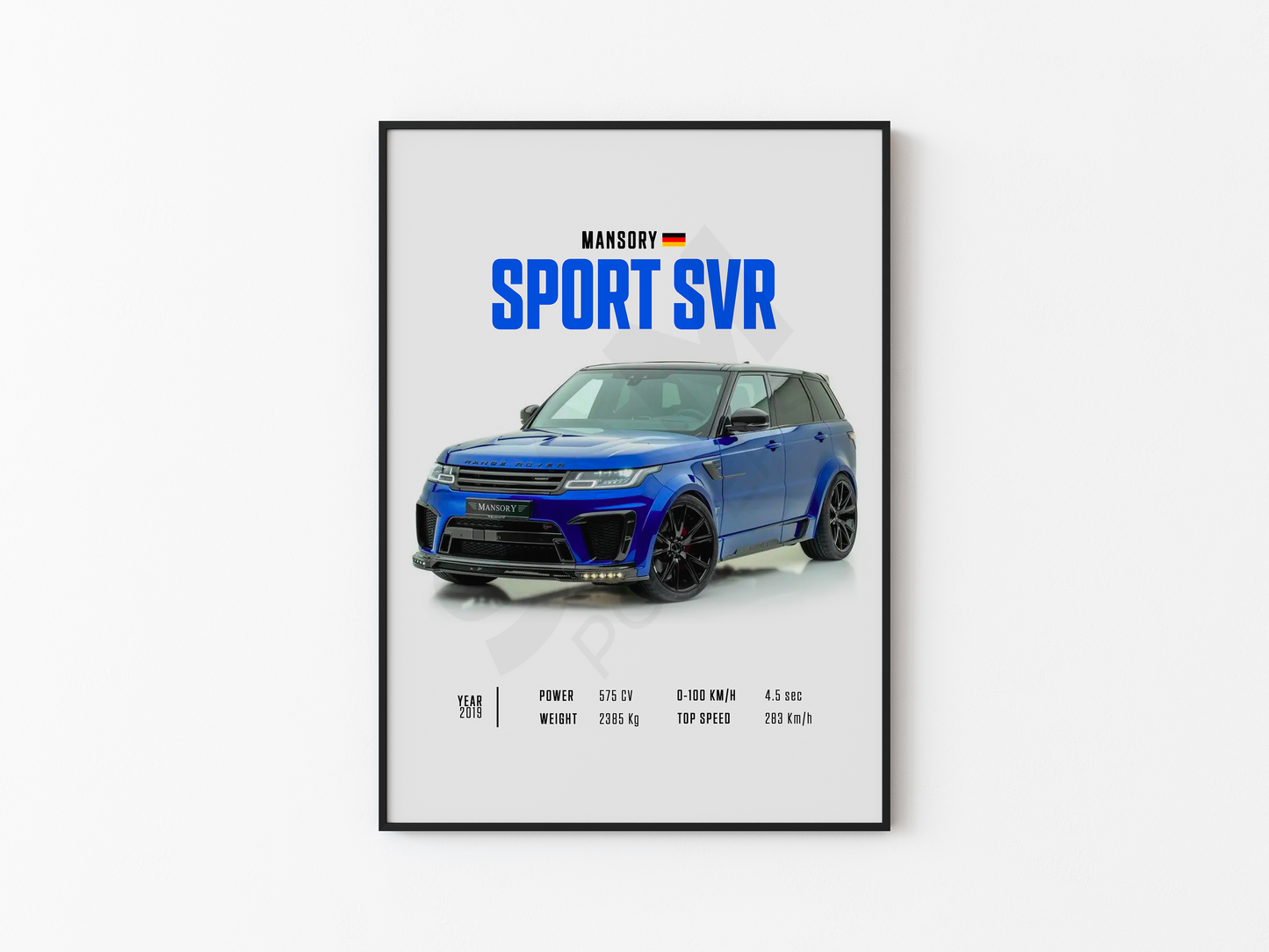 Découvrez la puissance de la Mansory Sport SVR à travers nos affiches exclusives. Embellissez votre décoration pour donner vie à vos murs avec nos posters, idéal pour les passionnés d’automobiles.
