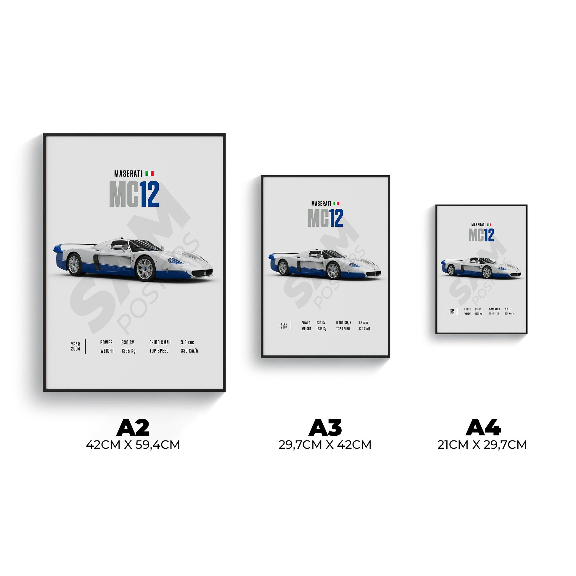 Découvrez la puissance de la Maserati MC12 à travers nos affiches exclusives. Embellissez votre décoration pour donner vie à vos murs avec nos posters, idéal pour les passionnés d’automobiles.