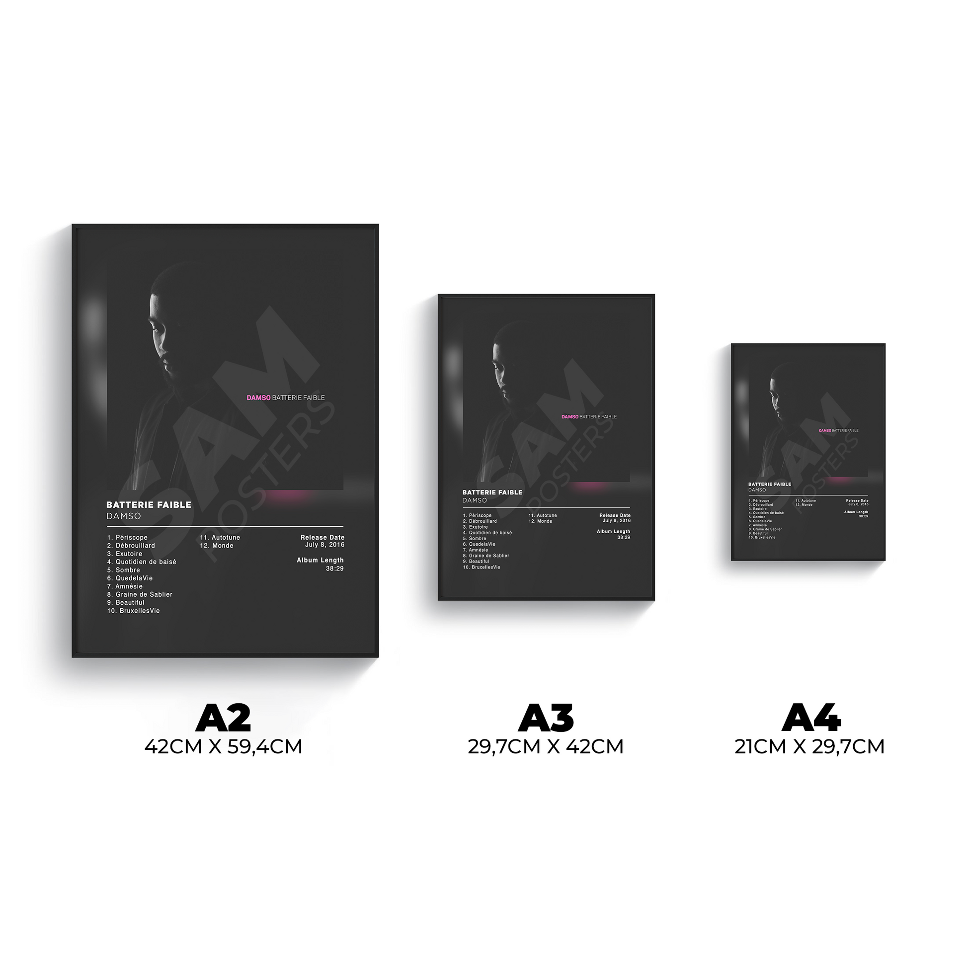 Explorez l'univers de Batterie Faible de Damso avec nos affiches exclusives. Transformez votre espace pour donner vie à vos murs avec des posters uniques capturant l'esthétique de cet album.