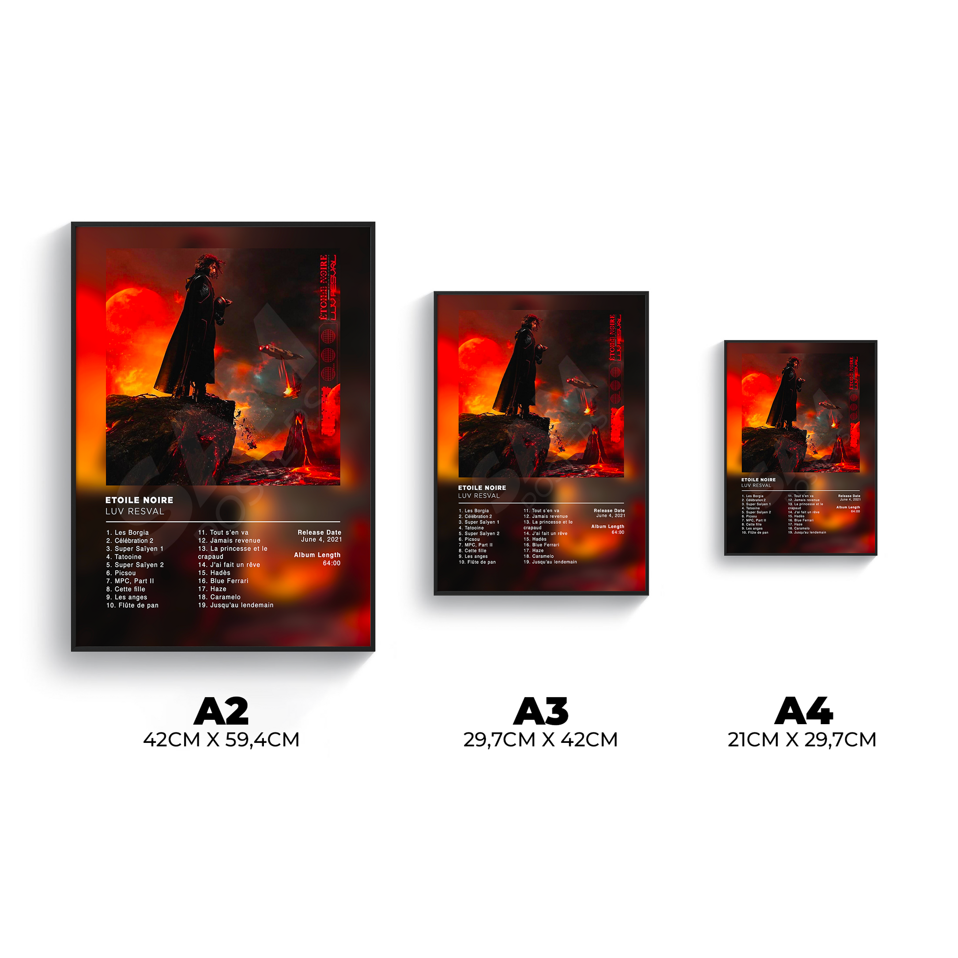 Explorez l'univers d'Etoile Noire de LUV Resval avec nos affiches exclusives. Transformez votre espace pour donner vie à vos murs avec des posters uniques capturant l'esthétique de cet album.