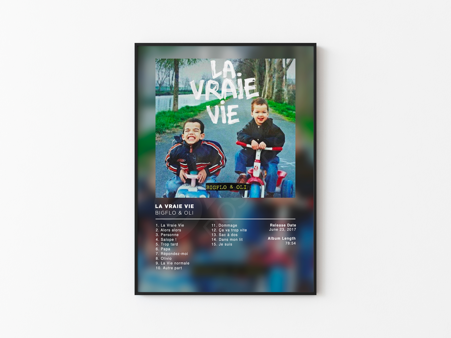 Explorez l'univers La vraie vie de Bigflo et Oli avec nos affiches exclusives. Transformez votre espace pour donner vie à vos murs avec des posters uniques capturant l'esthétique de cet album.