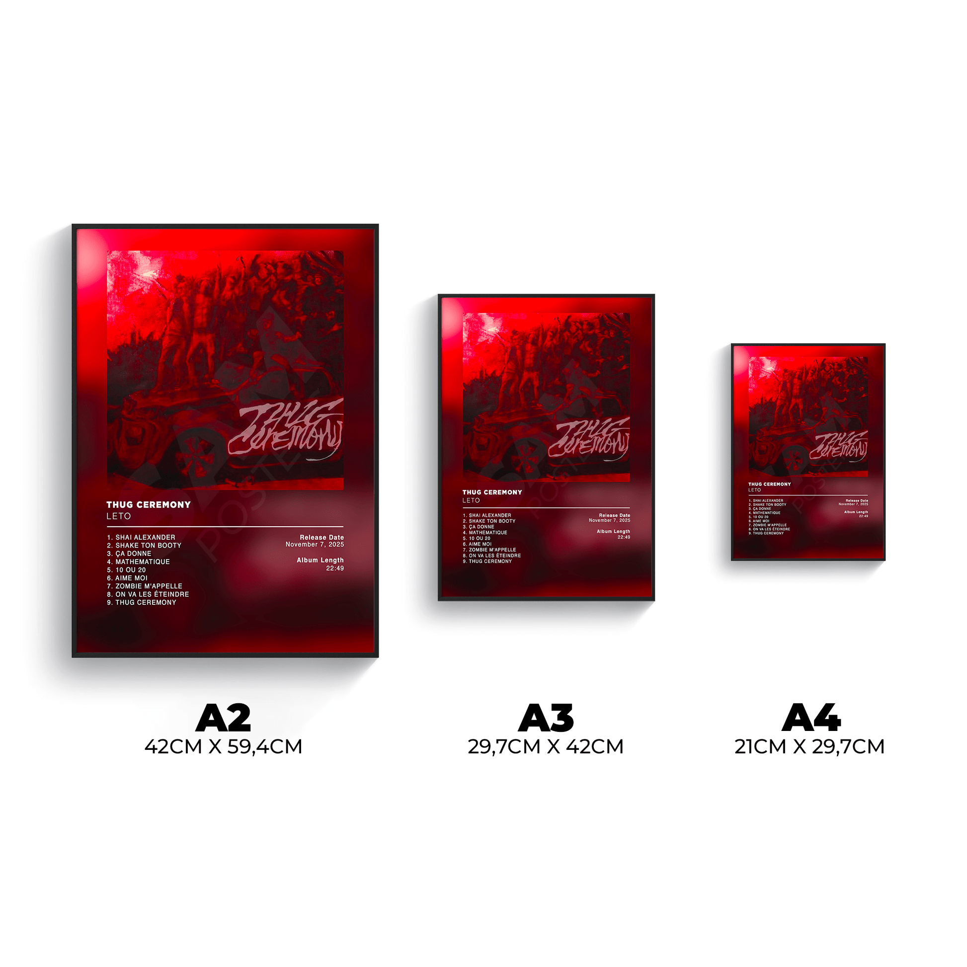 Explorez l'univers Thug Ceremony de Leto avec nos affiches exclusives. Transformez votre espace pour donner vie à vos murs avec des posters uniques capturant l'esthétique de cet album.
